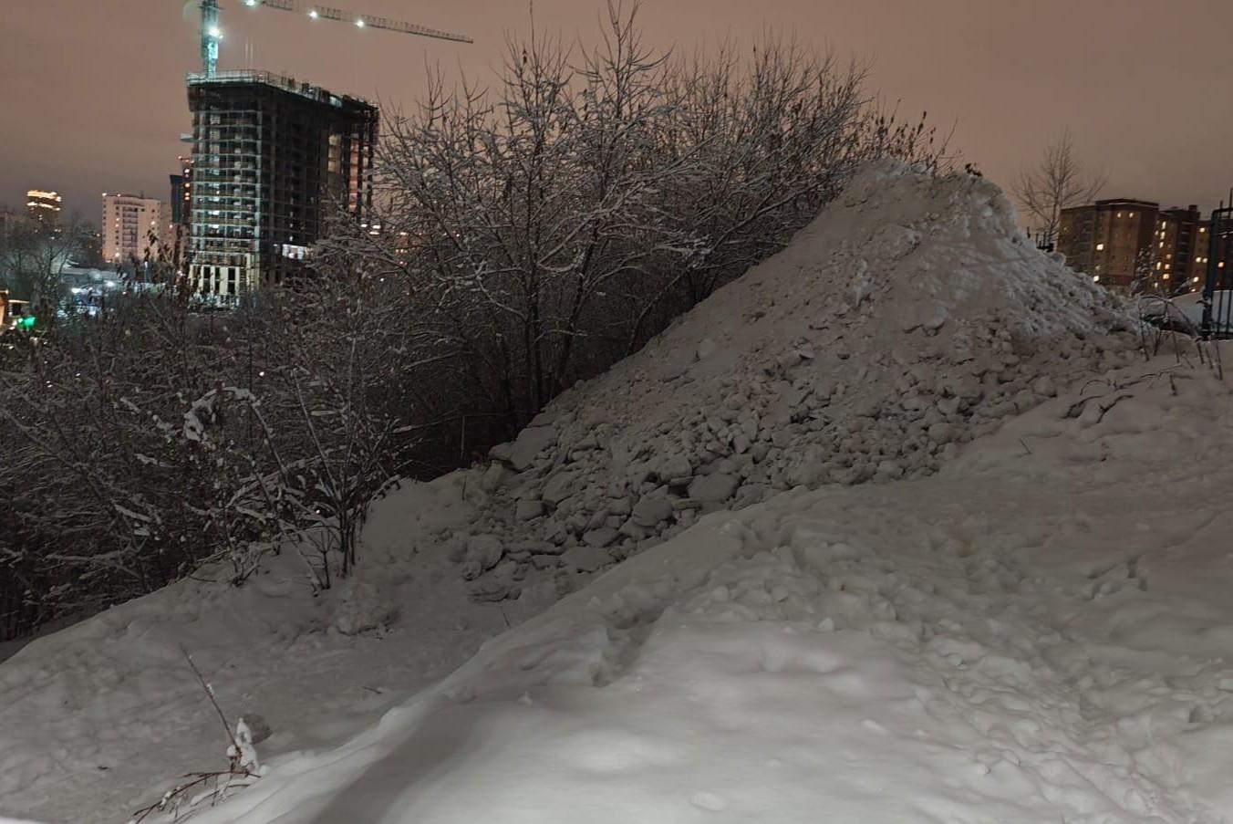«Рыкнули на меня»: на Овражной гору снега свалили рядом с Ельцовкой — почему его не увезлиМестная жительница опасается, что это может привести к загрязнению реки