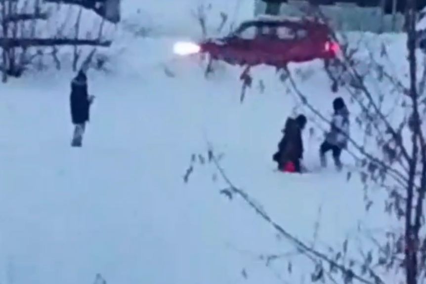 Чуть не сбил пешехода: «Лексус» вылетел на тротуар около НГУ — видеоВодитель проехал на красный свет