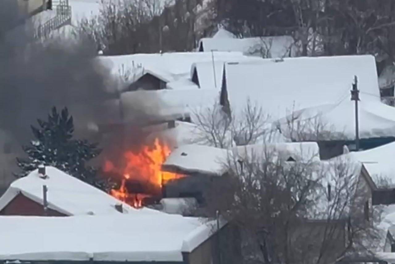 Полностью в огне: частный дом загорелся в центре НовосибирскаЗдание находится недалеко от улицы Фрунзе
