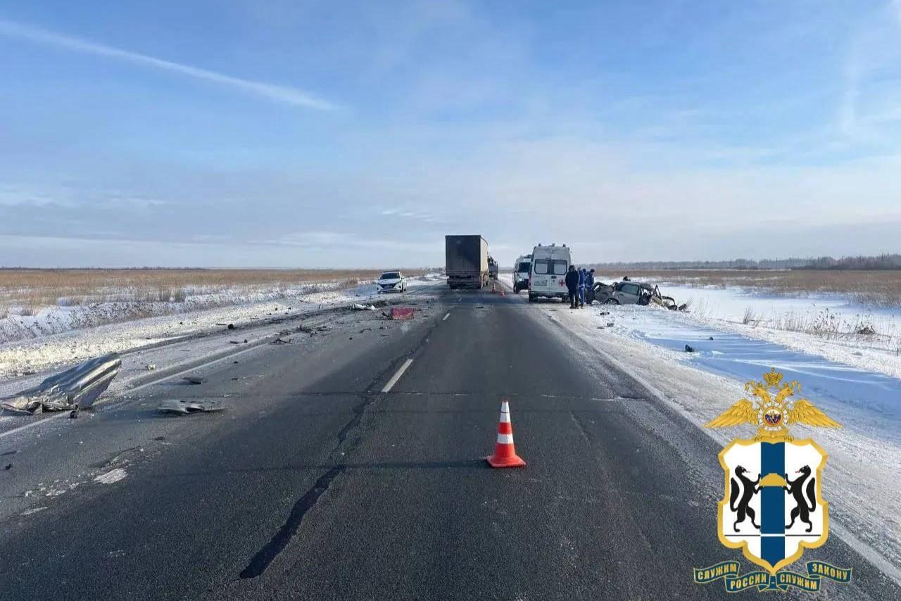 В массовом ДТП с грузовиком на новосибирской трассе погибло два человека — машина улетела в кюветНа месте аварии работают сотрудники ГАИ