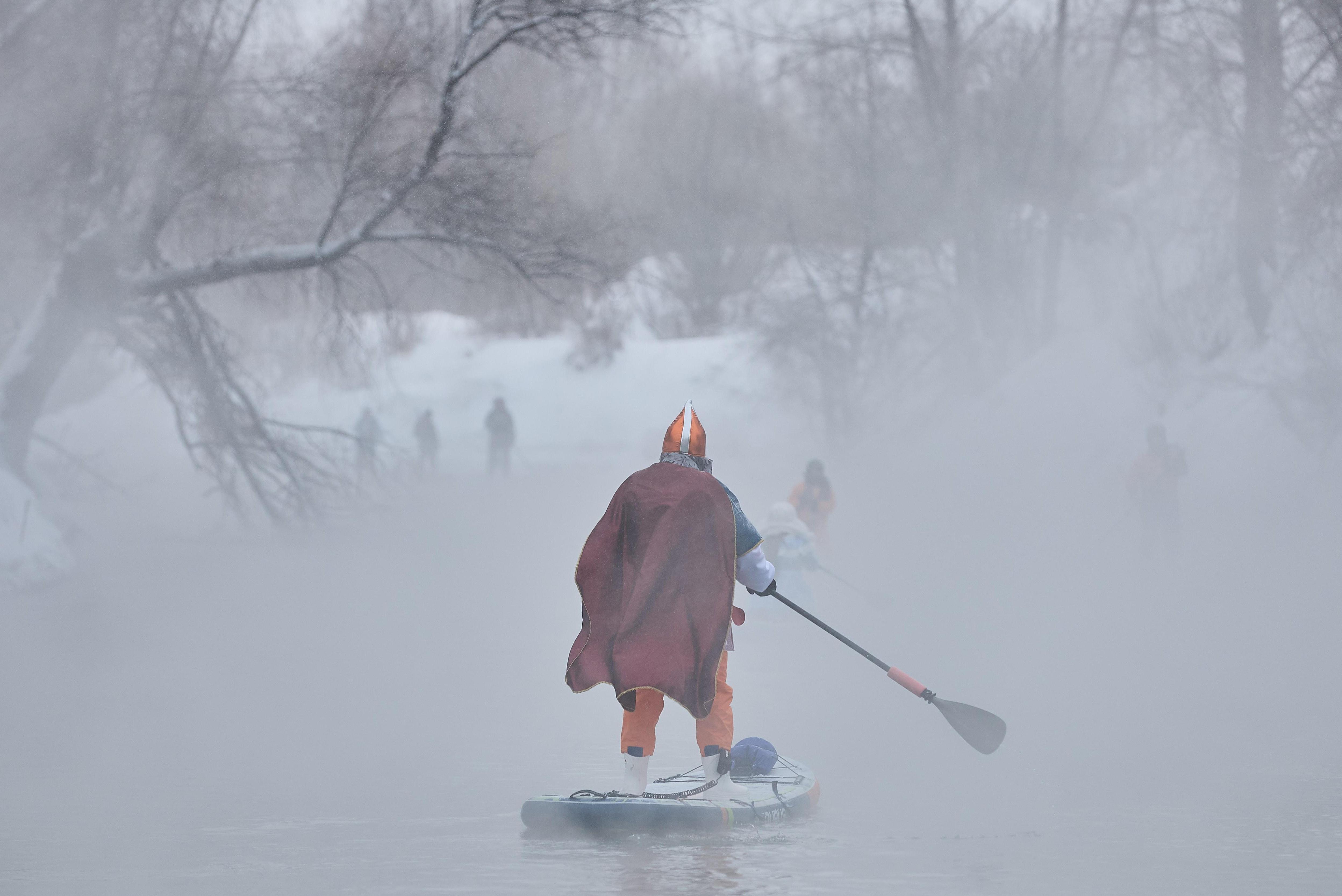 «Все оттенки холода»: богатыри и Снегурочки проплыли по Оби на сапсерфах — морозный фоторепортажНовогодний заплыв проводят уже в седьмой раз