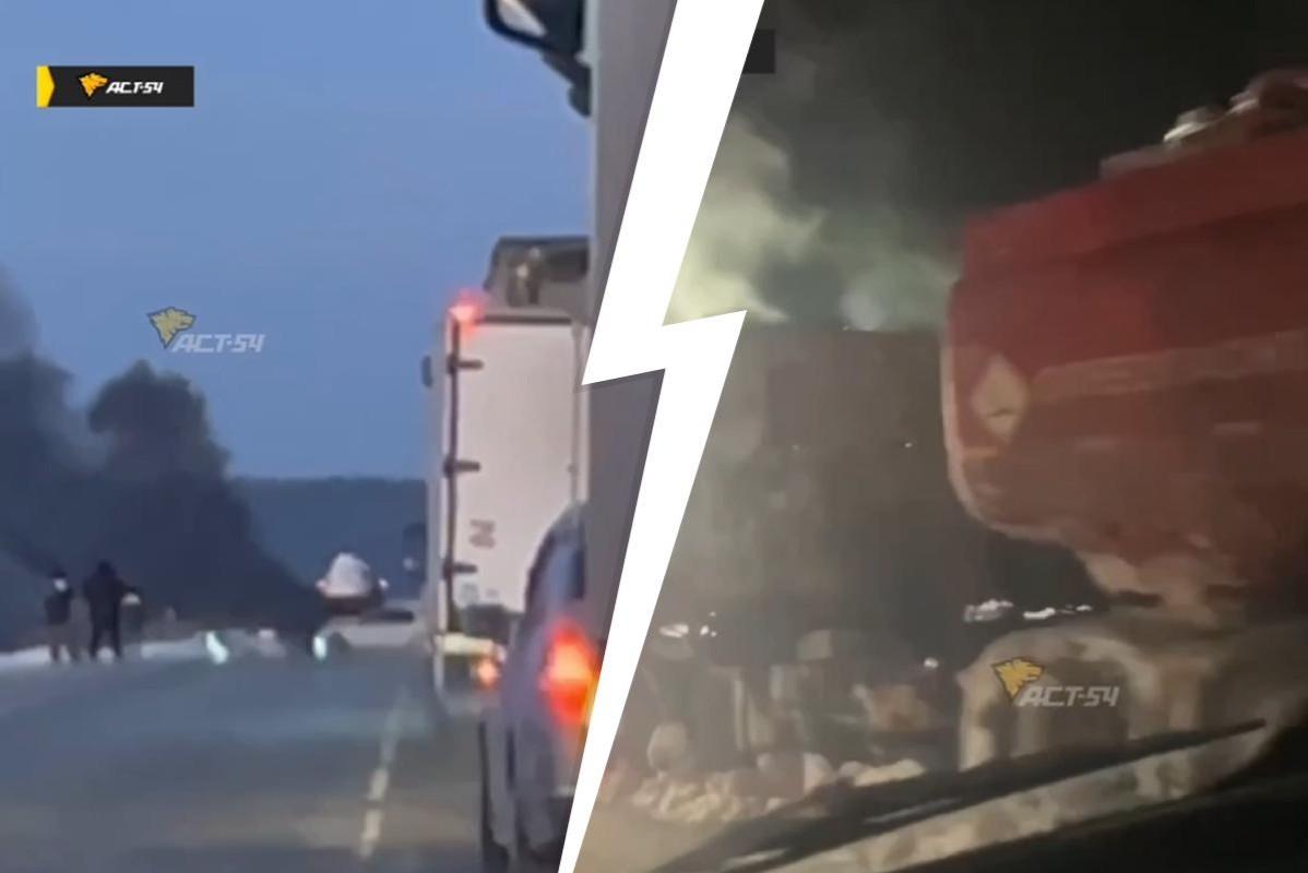 Поднялся столб черного дыма: бензовоз загорелся на Северном объезде — видеоКабина авто полностью сгорела