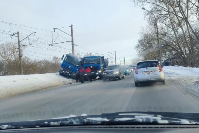 Два грузовика столкнулись на Тёщином языке — на участке собралась пробкаПодробности ДТП неизвестны