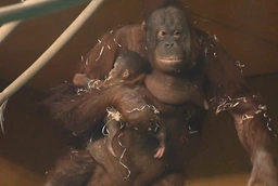 В зоопарке Новосибирска показали орангутанга Мишель и ее детеныша