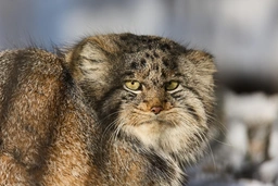 Манул утрамбовал снег необычным способом в Новосибирском зоопарке