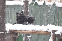 В Новосибирске уссурийский медвежонок Дуся резвится в снегу