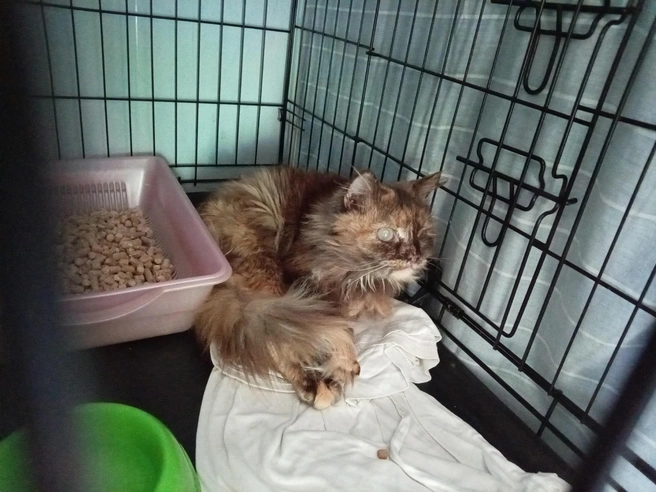 В Новосибирске ищут заботливых хозяев для кошки Фемиды. Животное потеряло зрение на улице.