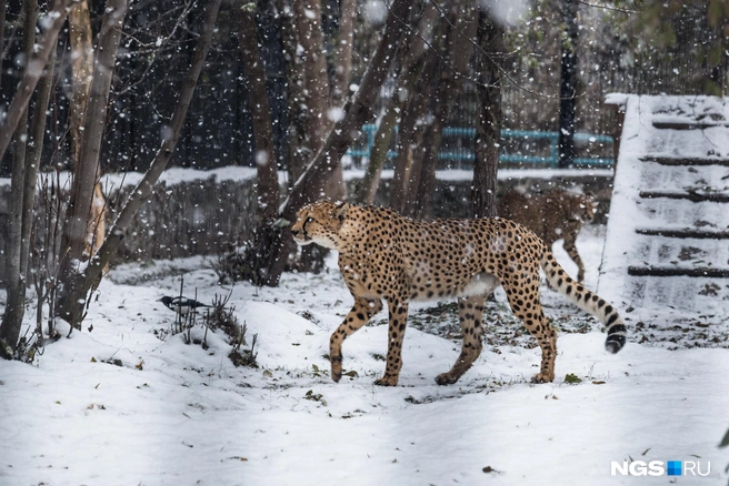 Отмечается, что пятнистая окраска гепардов — это не просто красивый узор, но и хорошая маскировка в саваннах. В Новосибирском зоопарке гепарды содержатся с 1970-х годов. У них есть большой вольер с теплым помещением. Интересно, что зимы хищники практически не боятся и даже гуляют, если на улице не ниже −10 градусов.
