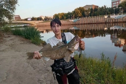 Омич выловил огромного судака в центре города