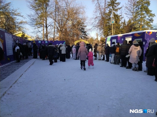 2 января в Центральном парке в Новосибирске собралась очередь из желающих покататься на коньках.