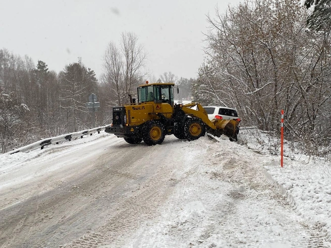 Рядом оказался трактор, который помог водителю выбраться обратно на дорогу.