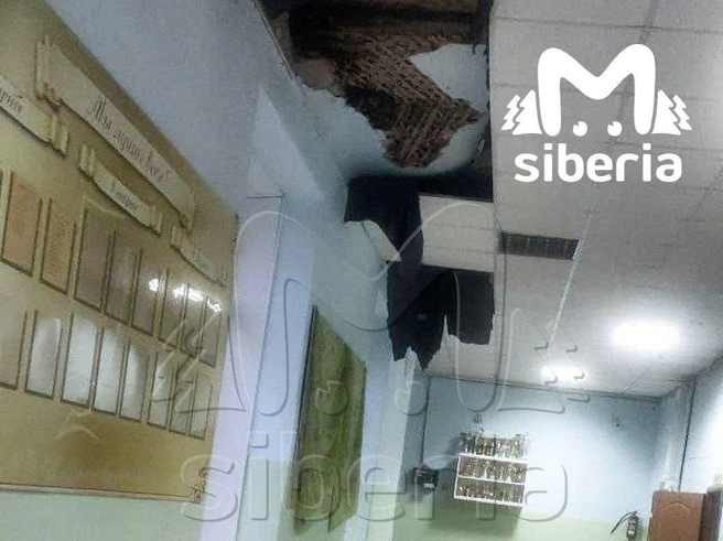 В здании Вьюнской школы в Колыванском районе образовалась дыра в потолке. Сейчас участок оградили.