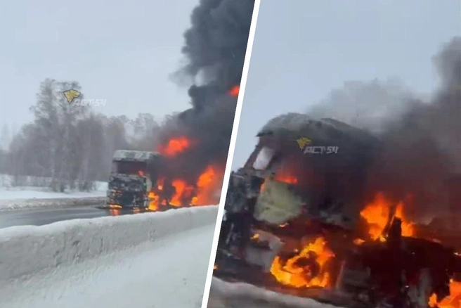 В Новосибирской области грузовик с полуприцепом сгорел дотла на трассе Р-255. Об этом сообщили в телеграм-канале «АСТ-54 Black».