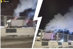 Грузовик загорелся в Новосибирске около остановки «2-я Северная»