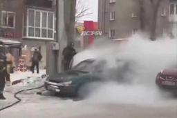 В Новосибирске на улице Гоголя загорелся седан