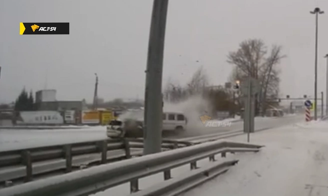 Момент смертельной аварии на Советском шоссе попал на видеорегистратор. В ДТП погибли шесть человек. Кадры опубликовали в телеграм-канале «АСТ-54 Black».