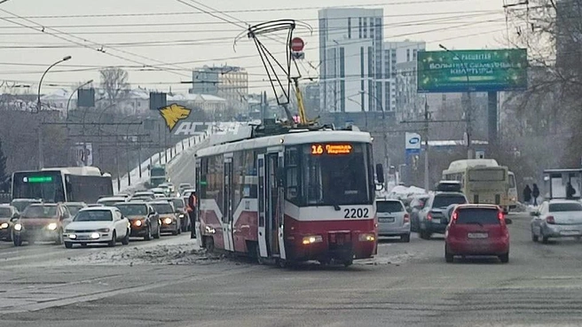 3 января на перекрёстке улиц Сибиряков-Гвардейцев и Немировича-Данченко трамвай сошел с рельсов. Об этом сообщили в телеграм-канале «АСТ-54 Black».