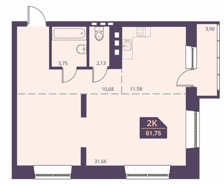 двухкомнатная квартира на 10-м этаже