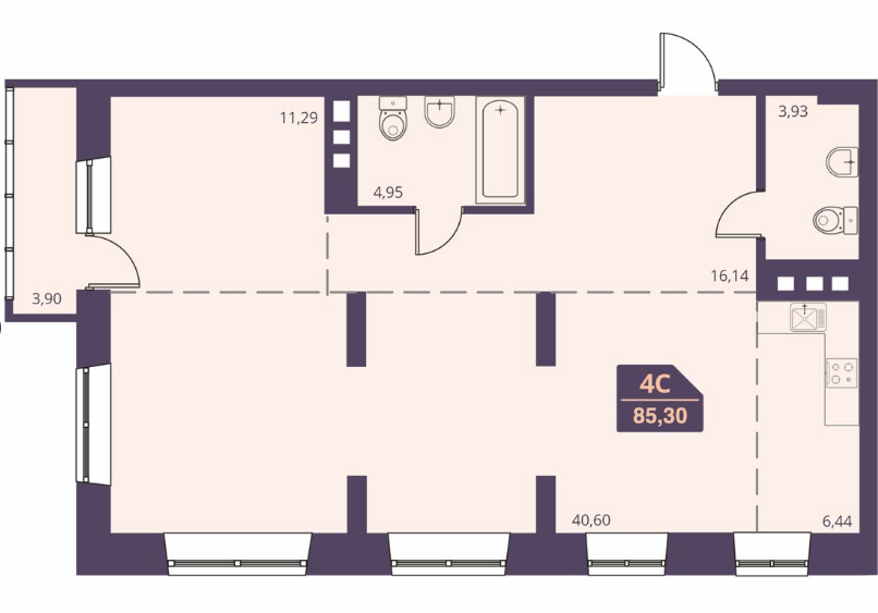 четырехкомнатная квартира на 19-м этаже
