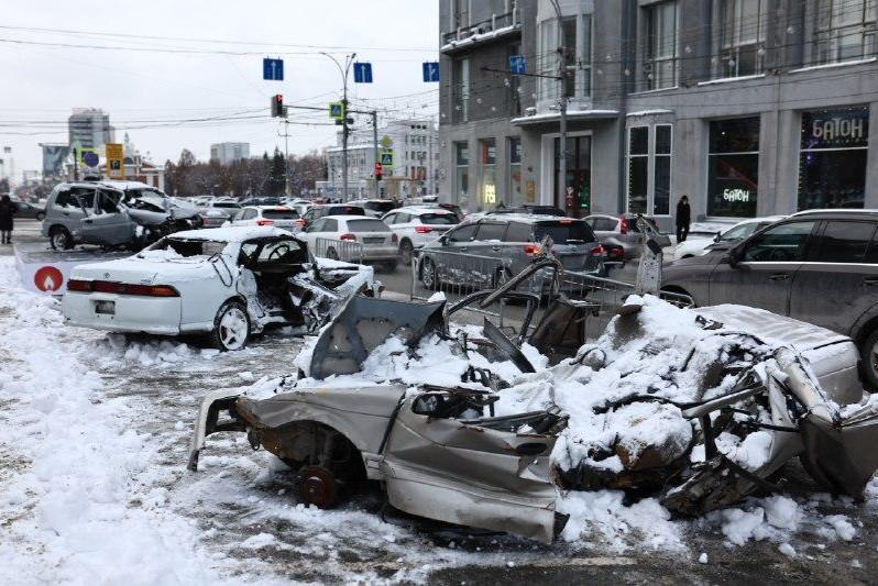 «Последняя парковка»: в центре Новосибирска поставили машины, побывавшие в страшных авариях — фотоАкция приурочена ко Дню памяти жертв ДТП
