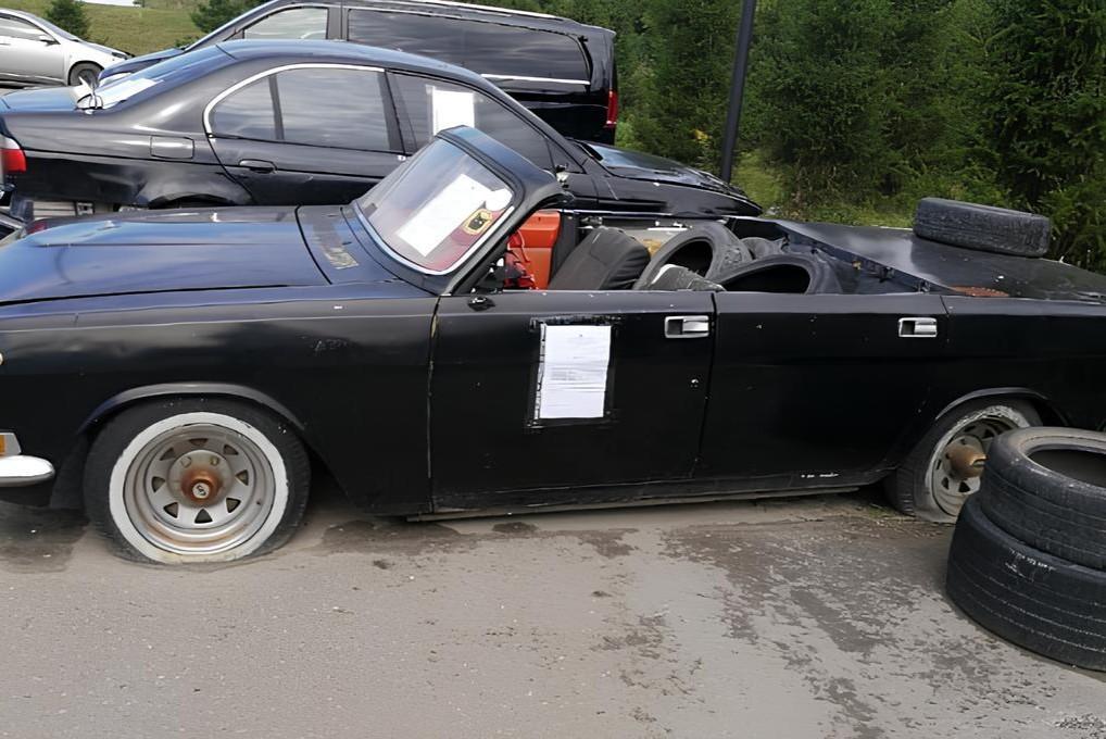 Новосибирские чиновники нашли самодельный кабриолет с горой покрышек — машину хотят увезтиАвтомобиль долгое время стоит на придомовой территории