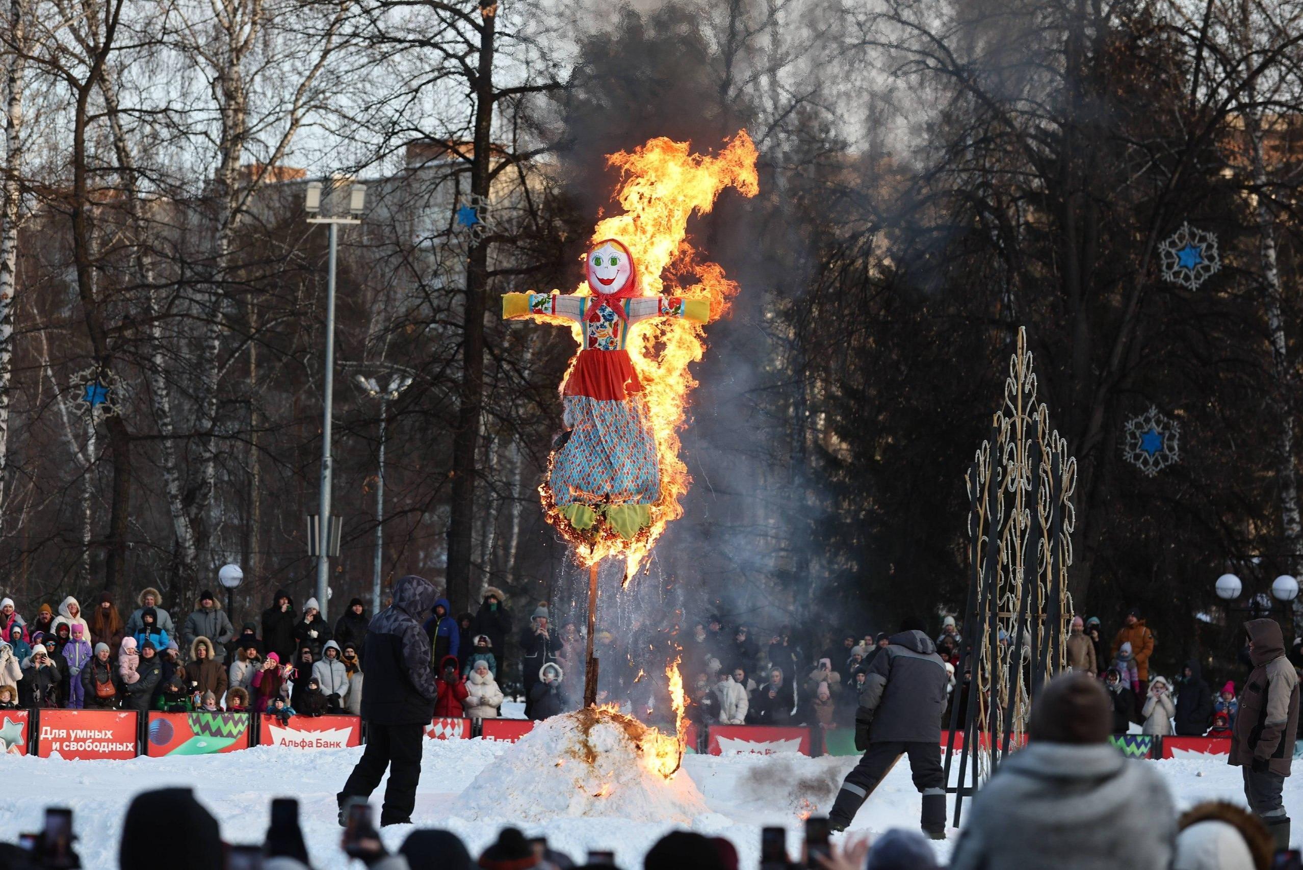 Гори ясно: толпа новосибирцев пришла в Центральный парк посмотреть на традиционное сожжение чучела — кадрыСегодня завершились гуляния в честь Масленицы