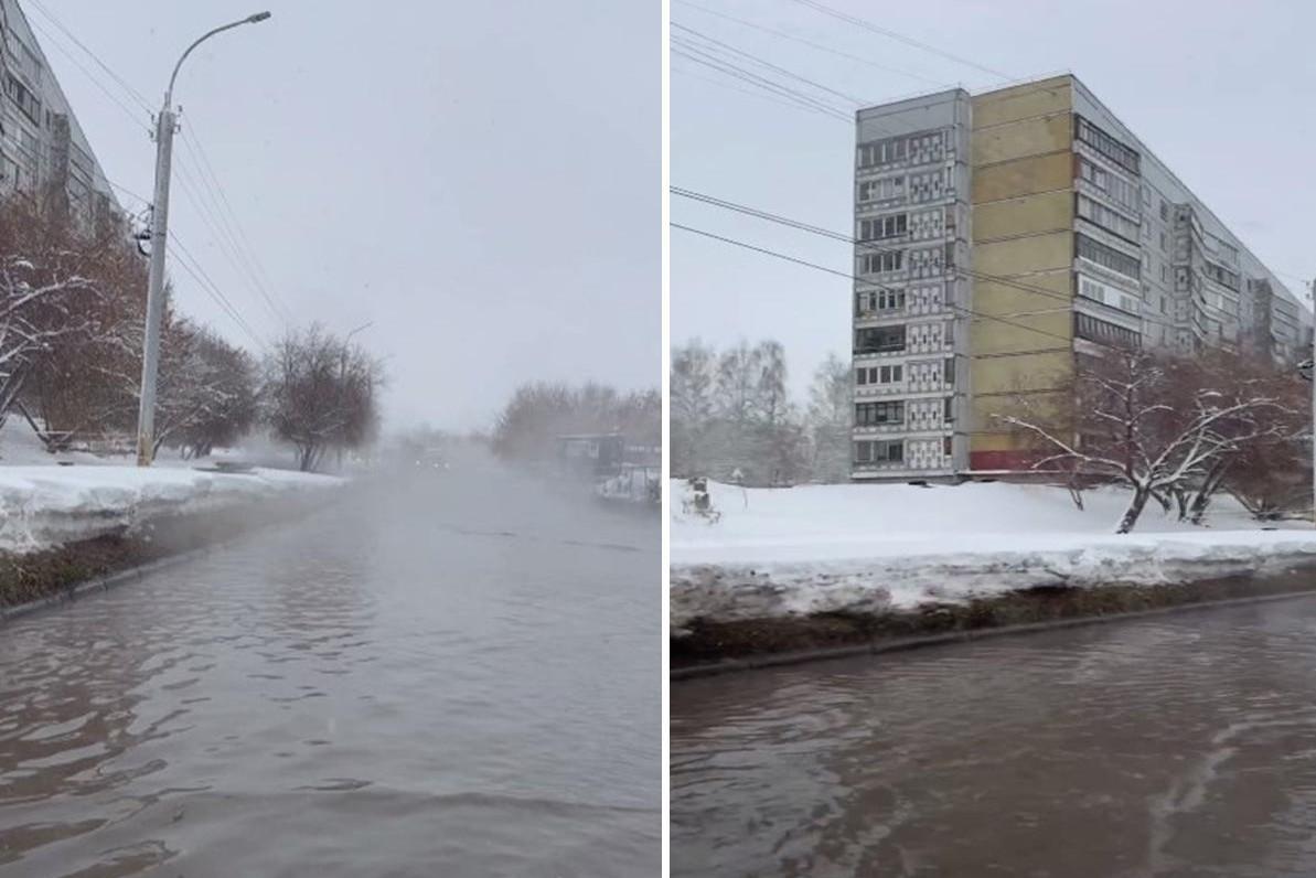 «Невозможно ехать»: горячая вода залила дорогу на улице Курчатова в Новосибирске — видеоПричиной стал дефект на теплосети