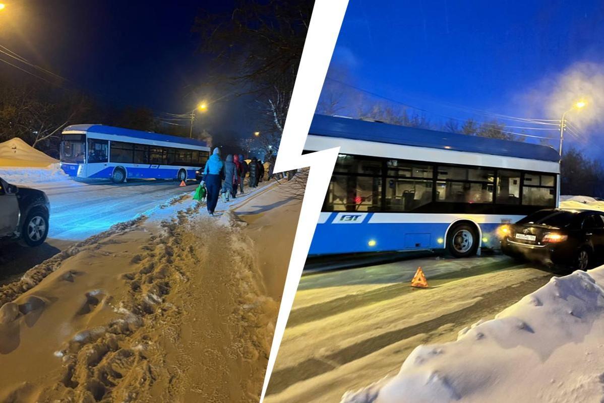 О пострадавших неизвестно: в Новосибирске столкнулись седан и пассажирский автобус — видеоПроисшествие случилось неподалеку от Экспоцентра
