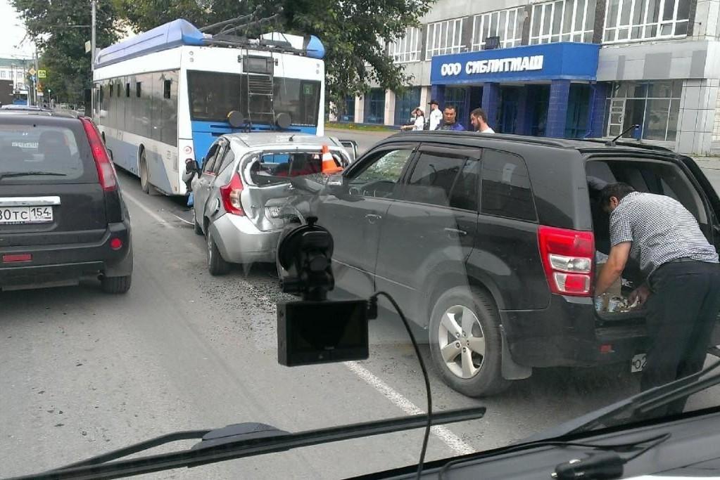 ДТП с тремя автомобилями произошло в Новосибирске — фото с места аварииМашины столкнулись рано утром 11 ноября
