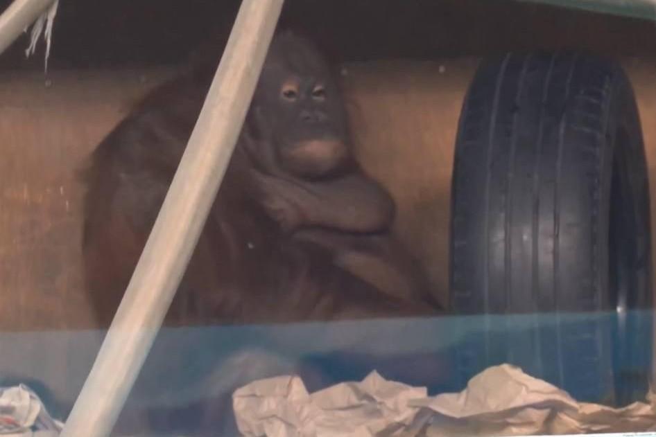 «Большая стирка» с Мишель: как орангутан из новосибирского зоопарка хозяйничает в вольере