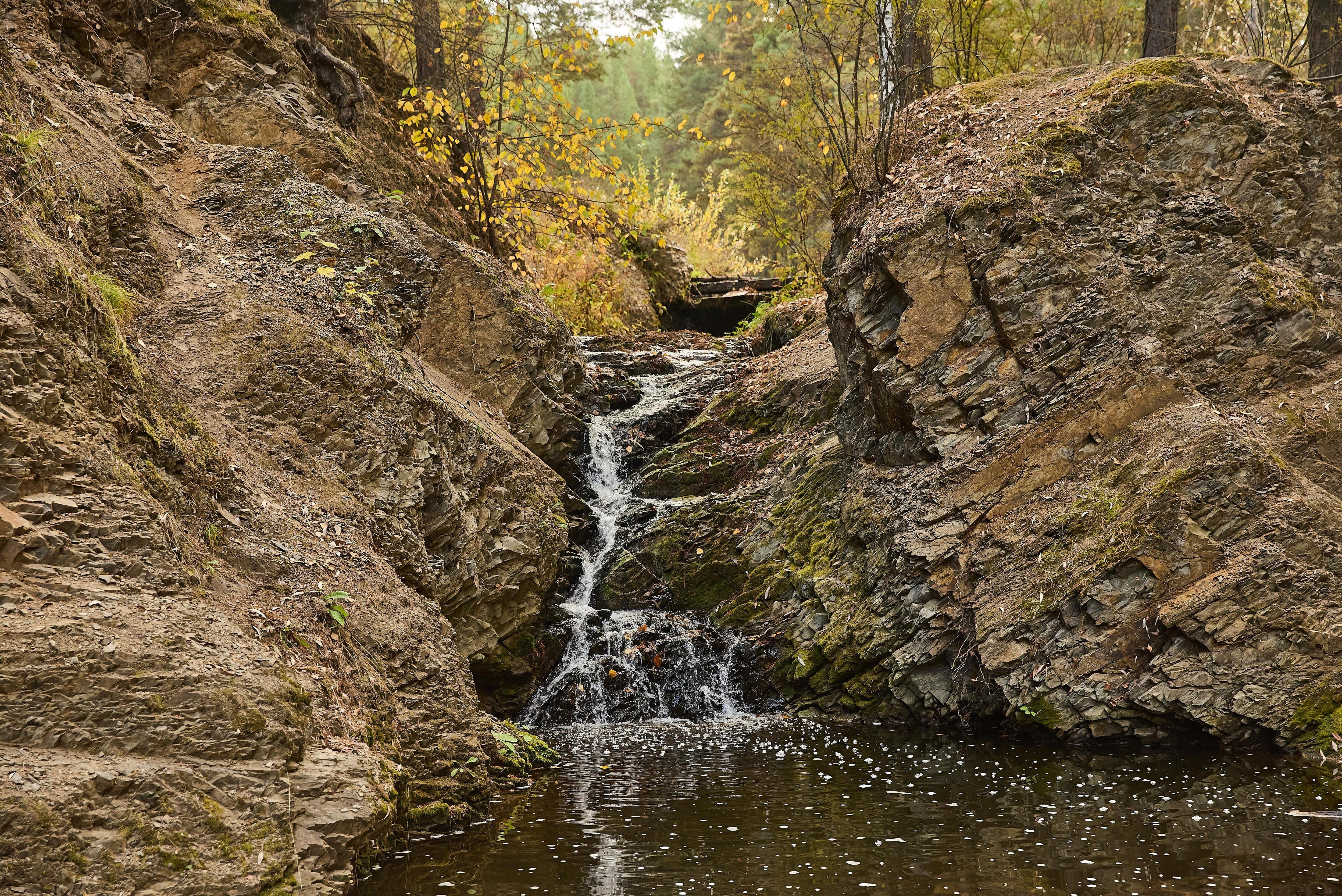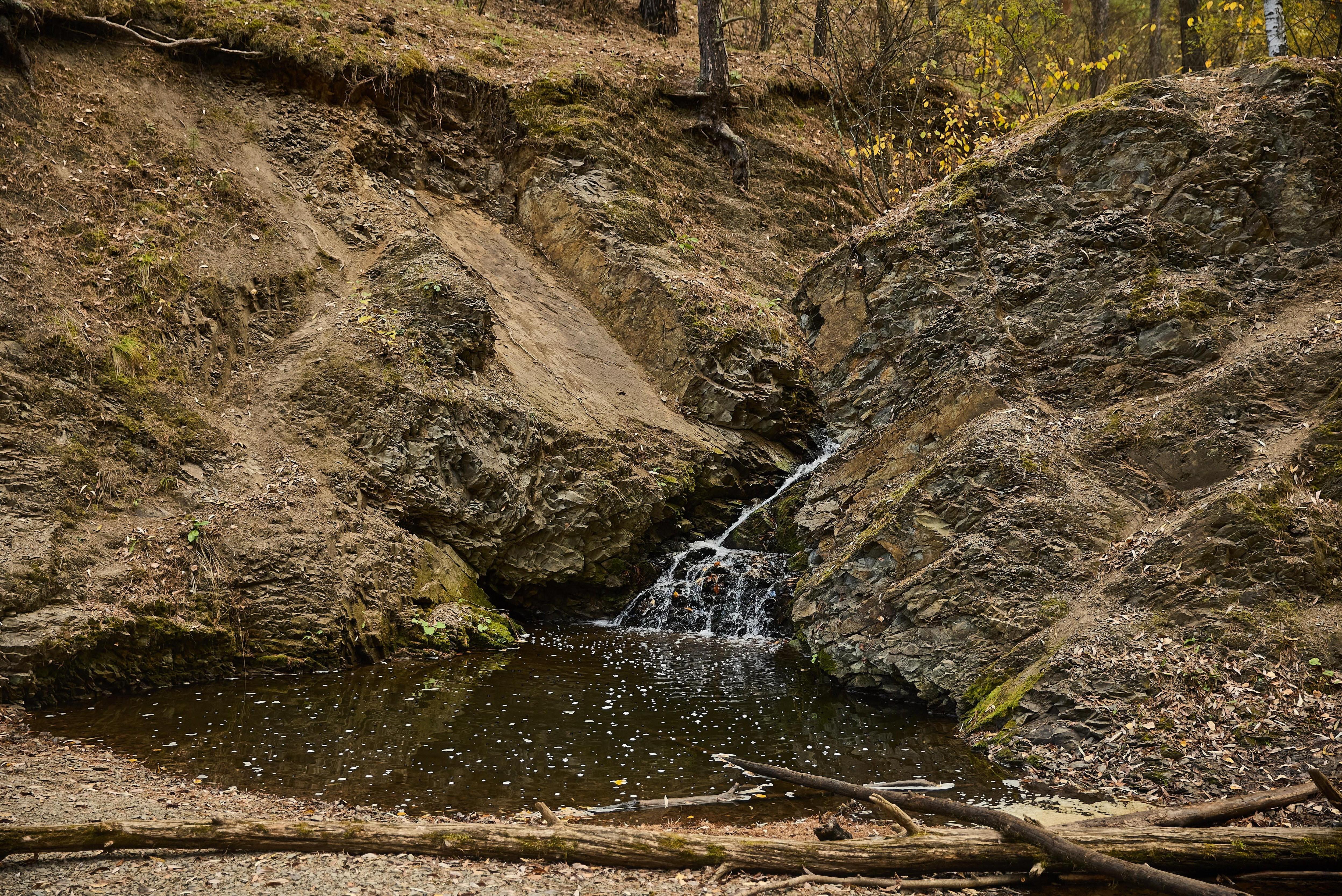 «Он вошёл прямо в скалу». Едем к таинственному водопаду на берегу моря: там ловят рыбу и рассказывают старые легендыОсенью по урочищу Тертый камень бежит красивый, но достаточно скромный ручеек — весной это настоящий водопад
