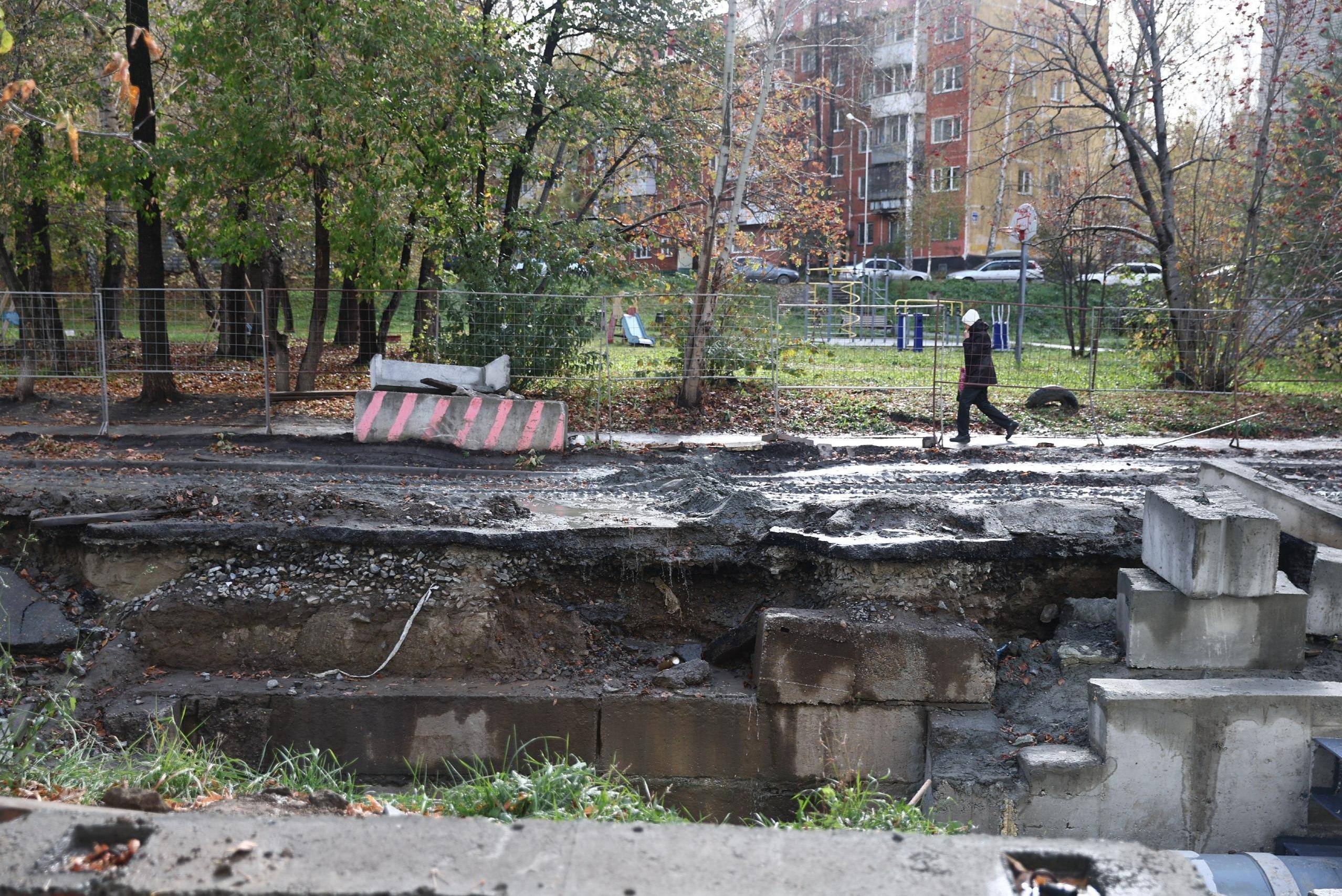 Помешали грунтовые воды: подробности обвала земли и асфальта у дома на улице Лежена — фото с местаЗасыпать разрытый участок должны за пять дней