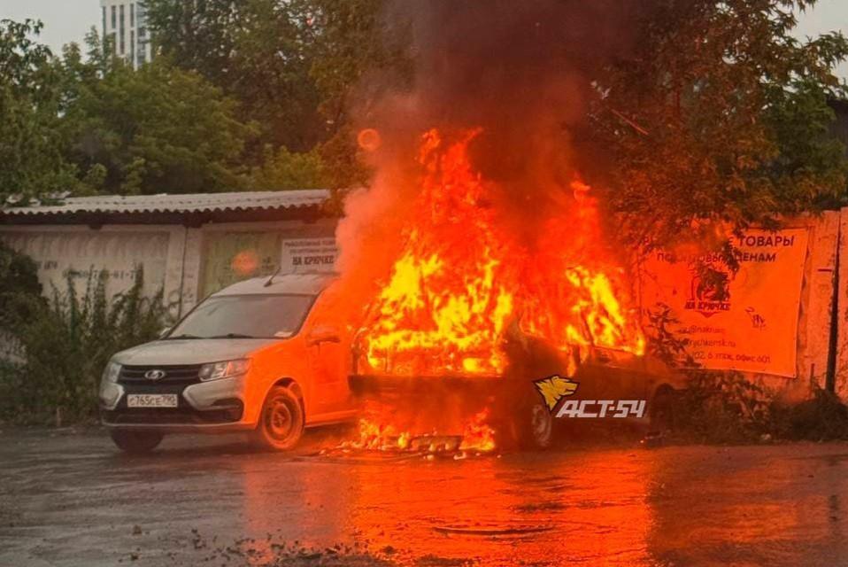 Автомобиль сгорел на улице Писарева в Новосибирске — видео с пламенемНа место выезжали сотрудники МЧС
