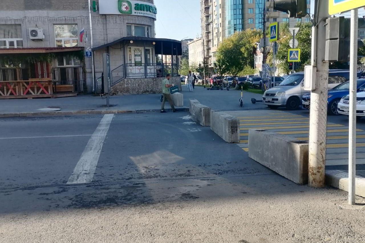 На улице Ленина после публикации НГС убрали бетонные полусферы, которые мешали пешеходамИх установили, когда участок дороги делали пешеходным