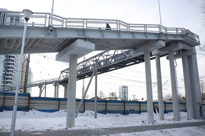 В Новосибирске завершили строительство надземного пешеходного моста через Транссибирскую магистраль в створе улицы Войкова. Об этом мэр Максим Кудрявцев написал в своем телеграм-канале.