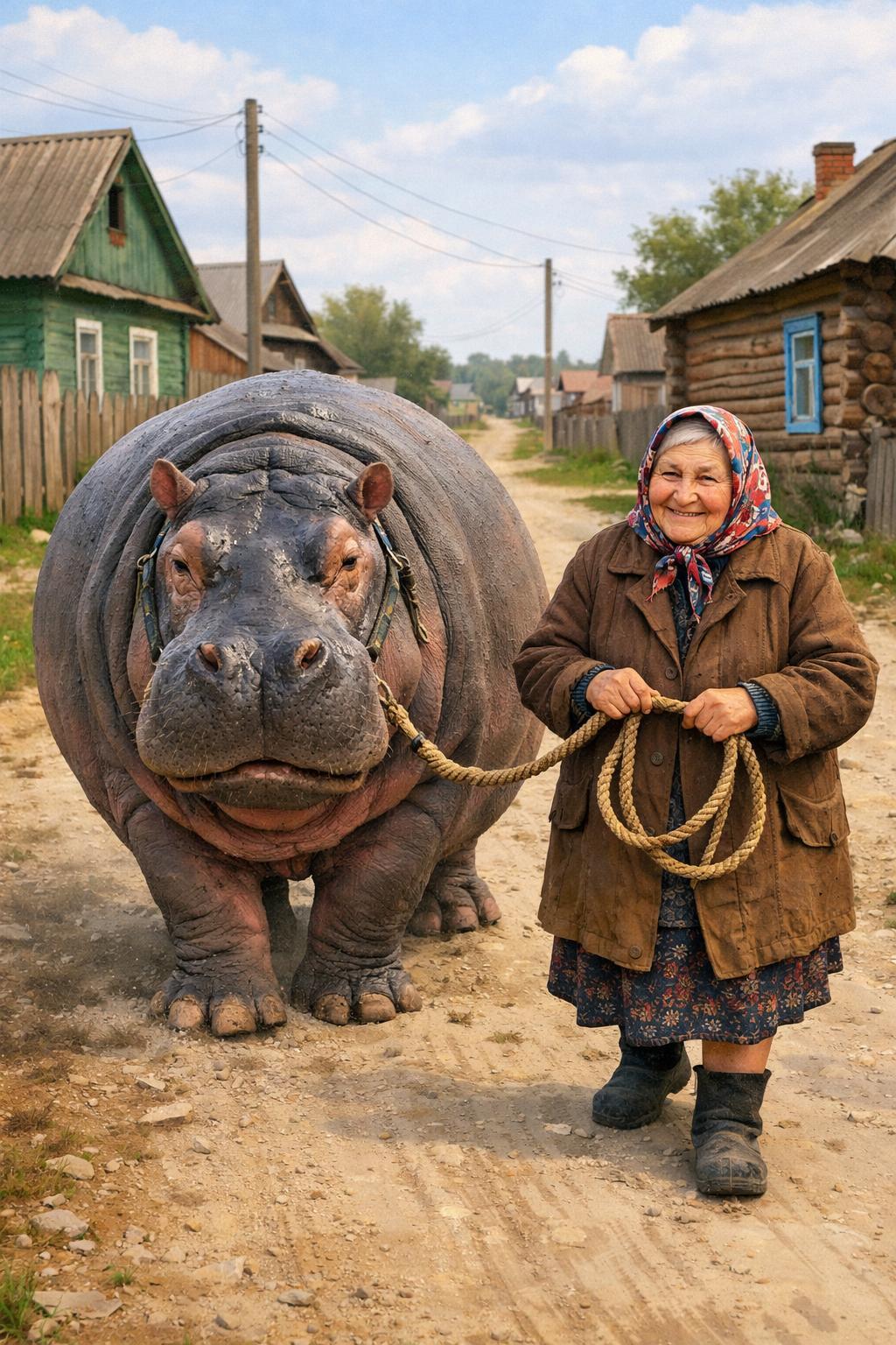 Интернет в России взорвали видео со смелыми бабушками, которые выгуливают на поводках экзотических животных (например, бегемотов).